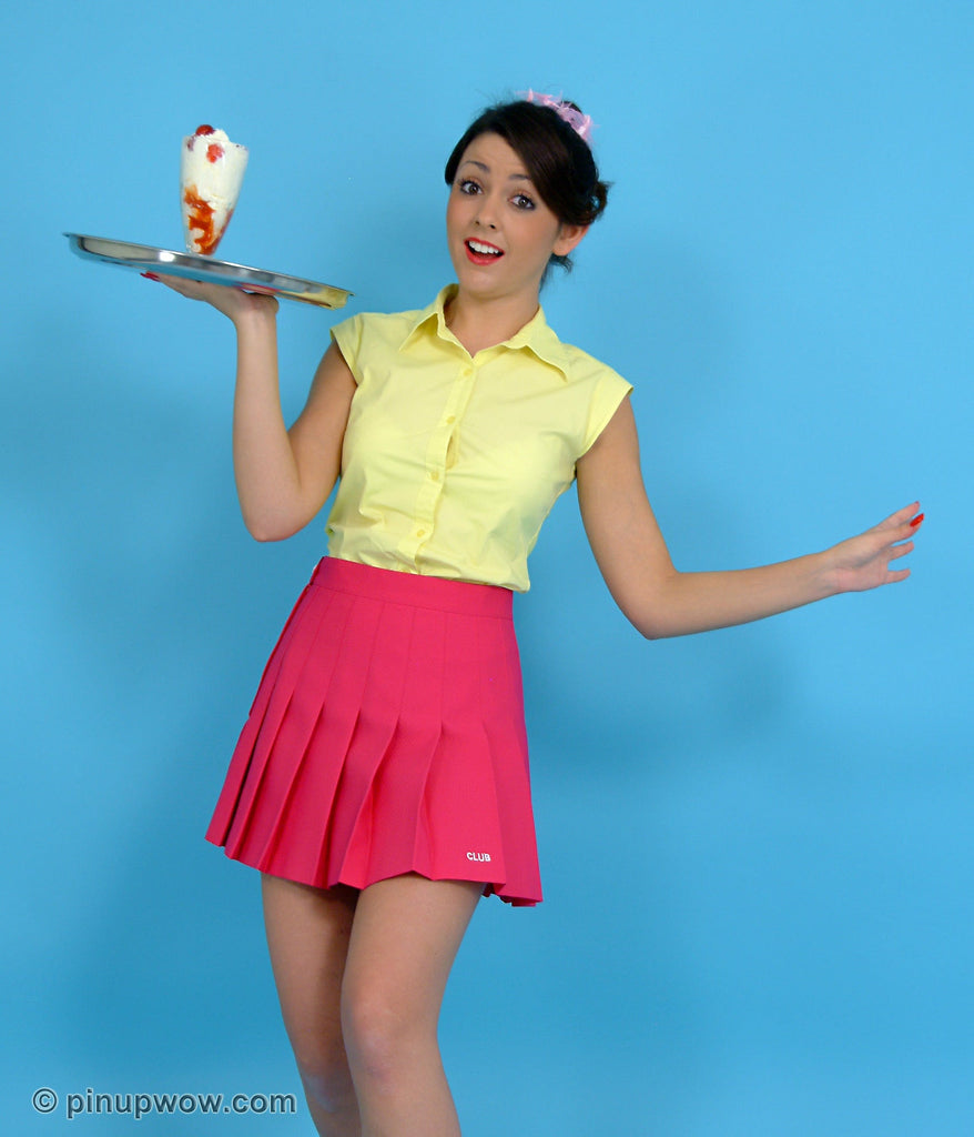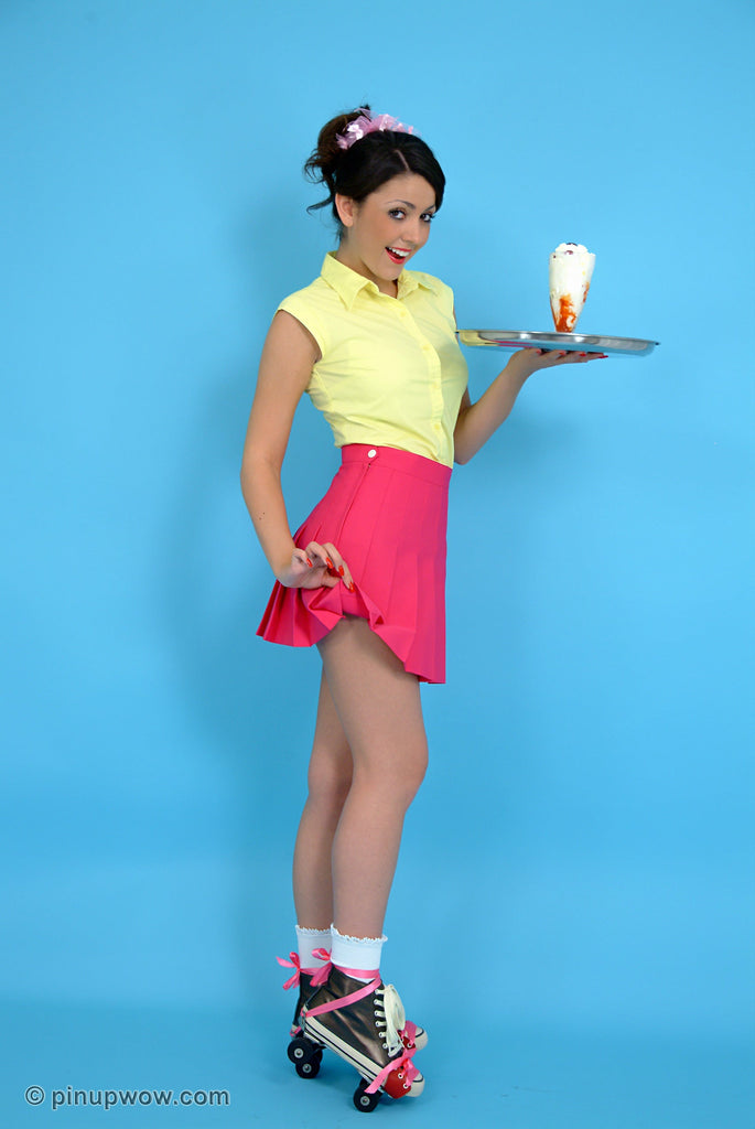 Bryoni-Kate looks perfectly delicious as she delivers the knickerbocker glories on her roller skates. But when she loses her balance and disaster strikes, we are in for a very naughty treat!