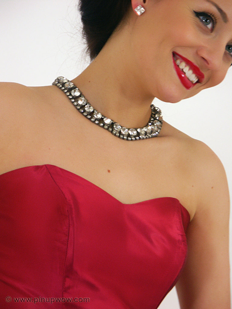 Heavenly Pin-Up Carla knows just how to get the pulses racing in a wonderful figure hugging red evening dress. Is she wearing something sexy underneath? Will she show us then tease it all off? When did hearing ‘Yes’ three times ever sound so good?