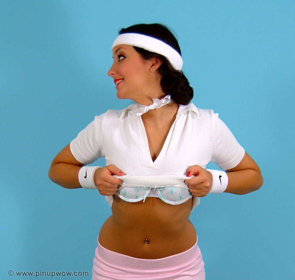 Cheeky Pin-Up Rachael looks so cute and sexy in her tennis outfit as she captures the attention of Wimbledon Centre Court. It's Ladies Day, and Rachael is in no mood for any bad line calls. But then when she sees the reaction in the Royal Box gallery to her lobs and spins, she decides to play a striptease game instead!