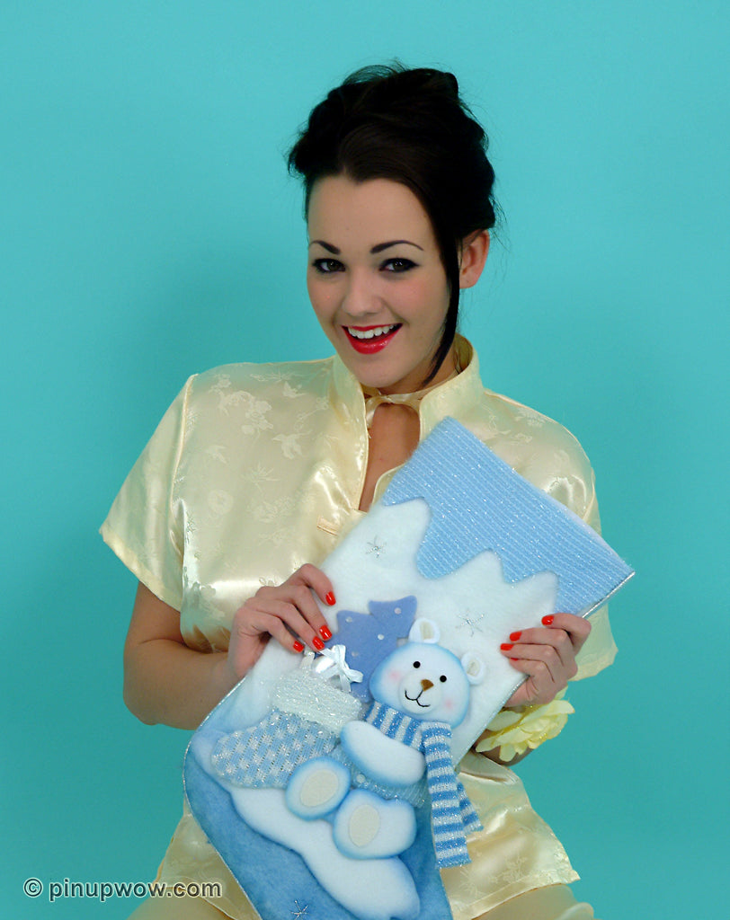 Pin-Up glamour photo of Jodie in Christmas Stockings - Jodie, Jodie gasson, pyjamas, christmas