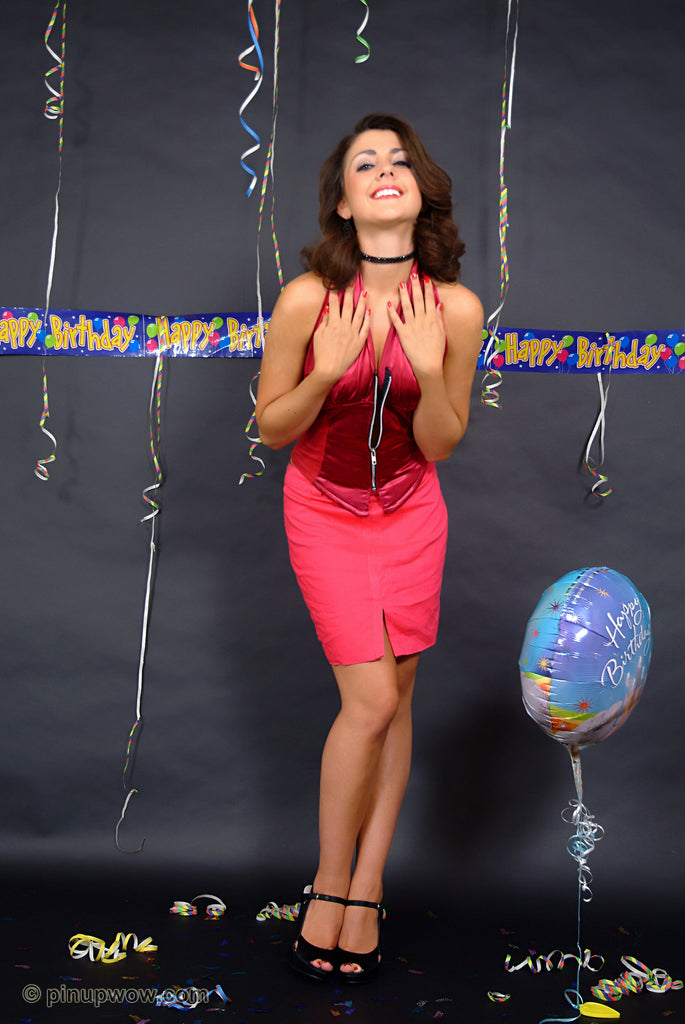 Heavenly Bryoni-Kate Williams has just arrived for a birthday party when she realises she has forgotten the present. Being a clever and very naughty Pin-Up, she soon decides to unwrap the present we are all longing to see.