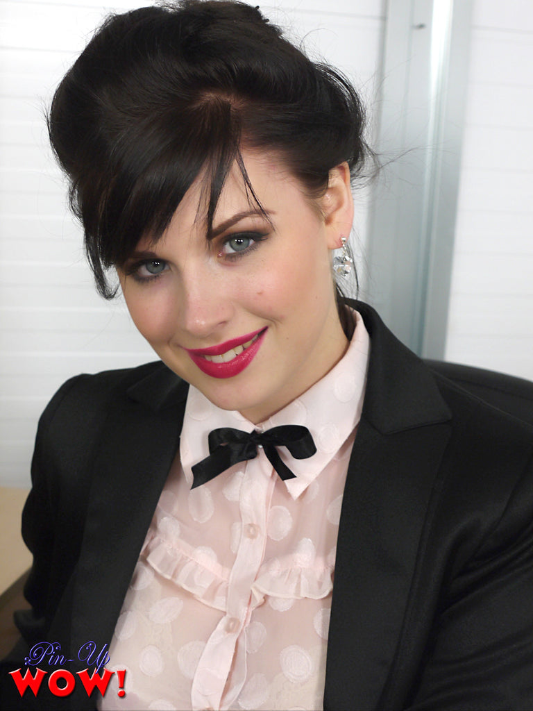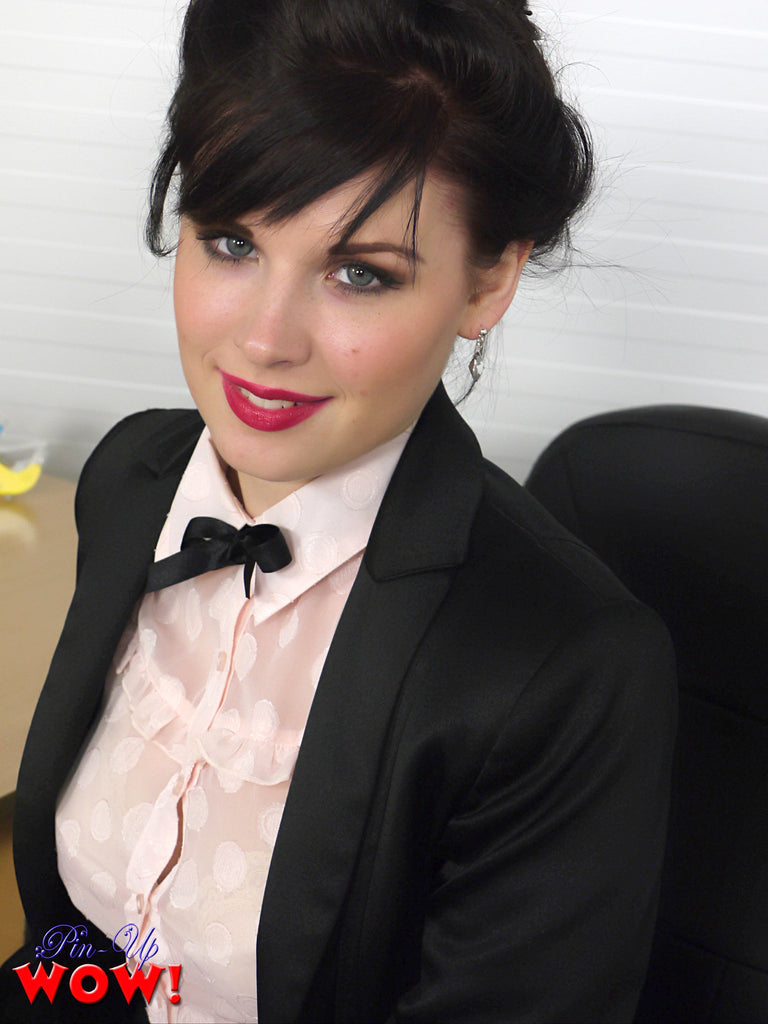 When you catch dishy new secretary Jocelyn-Kay chatting on the phone when she should be working, you have the upper hand. But this cutie knows a saucy office striptease might distract you onto more naughty matters!